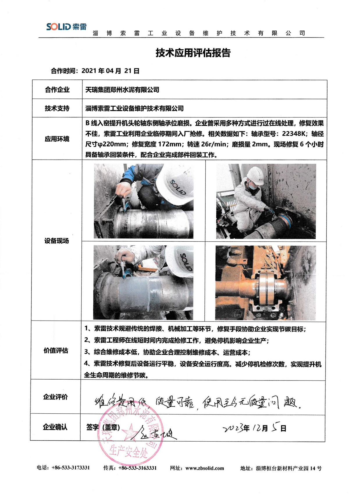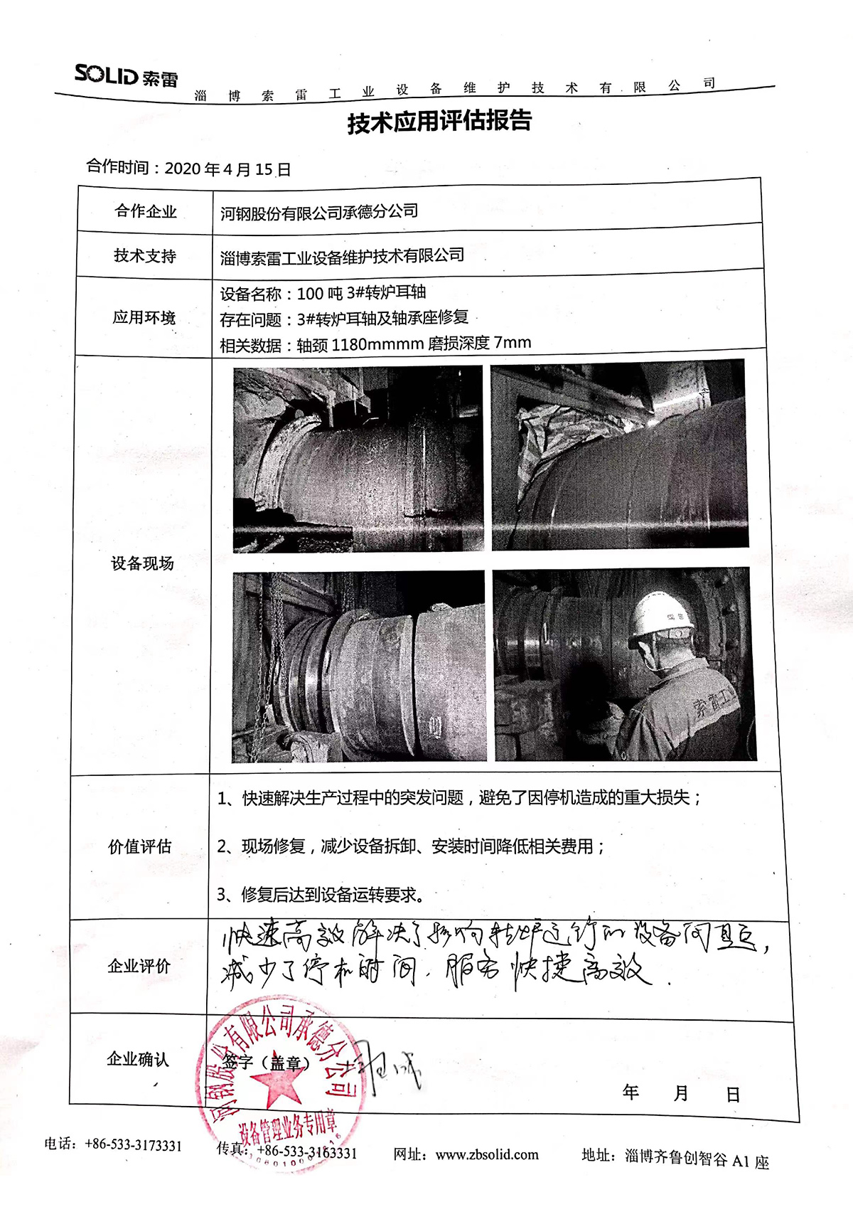淄博索雷工業(yè)設(shè)備維護(hù)技術(shù)有限公司(簡(jiǎn)稱:索雷工業(yè))始創(chuàng)于2014年,是領(lǐng)先的碳納米聚合物材料開(kāi)創(chuàng)者及應(yīng)用服務(wù)商。公司業(yè)務(wù)及經(jīng)營(yíng)網(wǎng)絡(luò)遍及全國(guó)31個(gè)省、自治區(qū)和直轄市,目前,主營(yíng)業(yè)務(wù)隨“一帶一路”已拓展至西亞、東南亞、東亞沿線近十余個(gè)國(guó)家,已與近3000家企業(yè)實(shí)現(xiàn)合作和提供過(guò)上萬(wàn)次的在線快修技術(shù)支持與可靠性高價(jià)值服務(wù)。